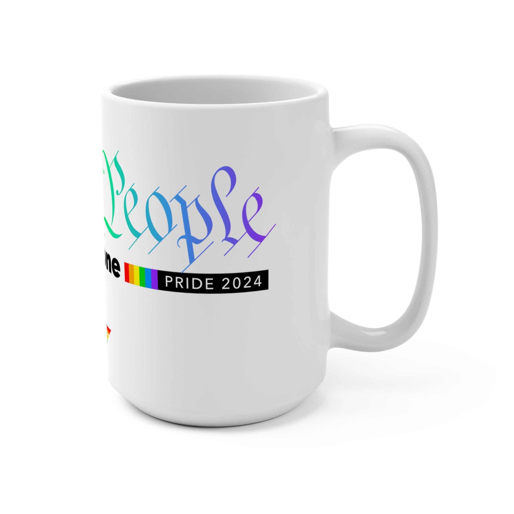 White ceramic 15oz much with 'We The People Pride 2024' graphic